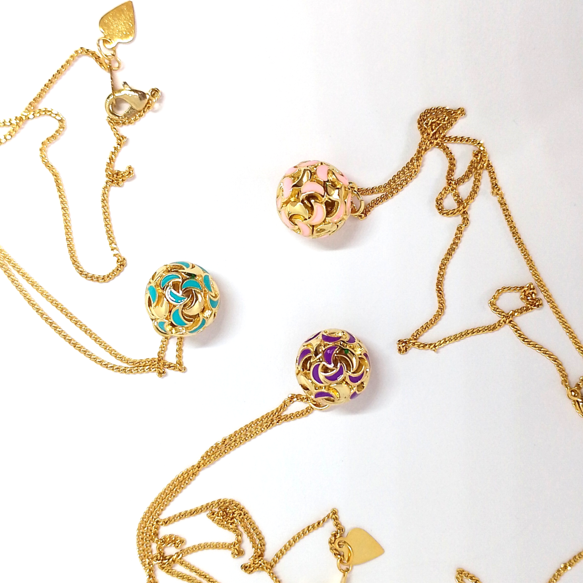 Discover the elegance of our gold-plated spheres, each meticulously adorned with delicate enamel crescent moons.